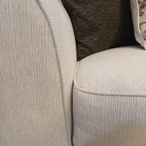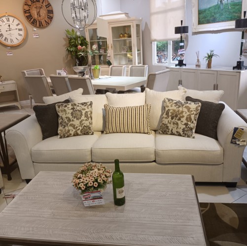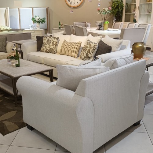 Elegant and sophisticated, this transitional style sofa has noble linen like fabric upholstery enhanced with classic roll arms. It is built with an extra-deep, plush seat for maximum comfort. This sofa adds modern flair to family rooms, living areas, and more.