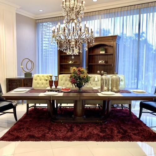 Our New Santana Dining Table from Fine Furniture’s Humpry Bogart collection makes you want to step back into another time and another place. Like Bogart himself, romance and strength are combined into one; with its rich burled wood top and flowing curves blending seamlessly with a solid base