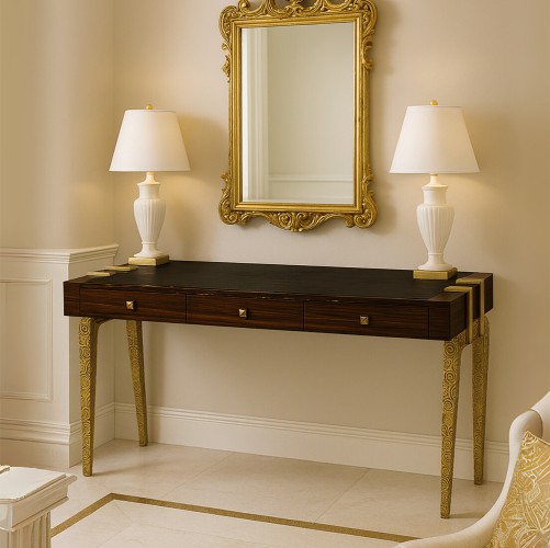 Details: Humphrey Bogart - Screenplay Writing Desk (FFD 1428-925) Dimension : 167 x 66 x 76 Cm Material : Wood, Metal base Weight : Kg By Malindafurniture