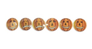 You can\'t go wrong with this unique set of Jack \'O\' Lantern glass coasters that combine style and function. They look great when not in use, but will protect your surfaces from dastardly water rings.