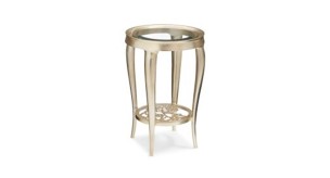 Cut metal grilles come to life in this end table that easily blends with other designs. This small table is luminous with its beveled glass top surrounded by a wide concave metal apron and graceful cabriole legs, bathed in Oracle silver leaf finish. This petite piece’s updated style exhibits a metal stretcher of cutout flowers arranged in a geometric pattern. This bouquet is Just For You.