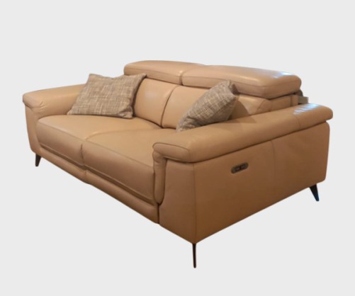Easing you into plush relaxation, with just the push of a button. The sleek profile of the ultra-modern design transforms bringing you from your seated position to reclined via the power motion mechanism. The sofa is supported by metal legs and covered in top grain leather match upholstery that further lends to the modern styling.