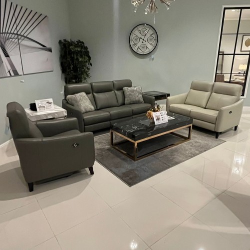 KENDALL - 3 SEATER SOFA POWER (LEATHER SPLIT) DARK GREY (CH 06-5326-31-NL5102)