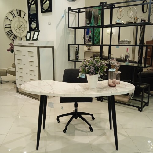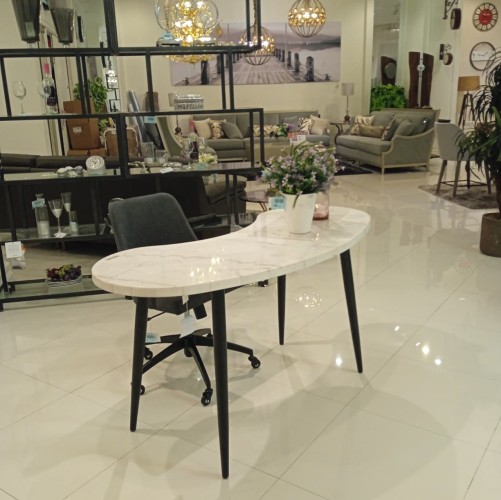 Kinsley White Marble Kinsney Shape Desk (STS KS200DL + STS KS200DT)