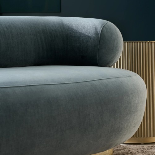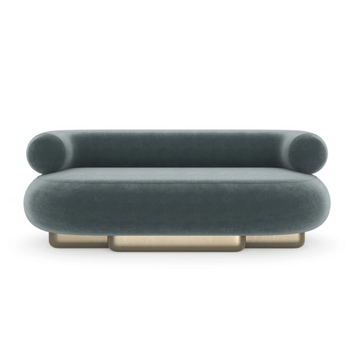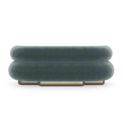 The Caracole Lagoon Sofa captivates with its graceful postmodern design, featuring a deep bean-shaped seat upholstered in vintage Peacock velvet. Its substantial curved bolster back offers both comfort and elegance, while the base, adorned with hand-applied Oracle leaf, evokes the fluid movement of waves. Perfect as a centerpiece, this sofa brings refined sophistication to any living space.