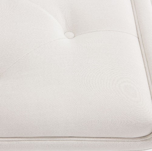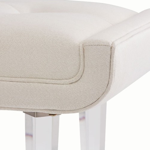 Seat is button-tufted and upholstered in a shimmering woven texture fabric