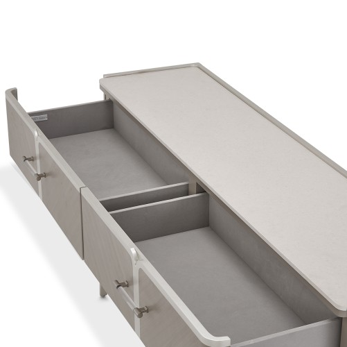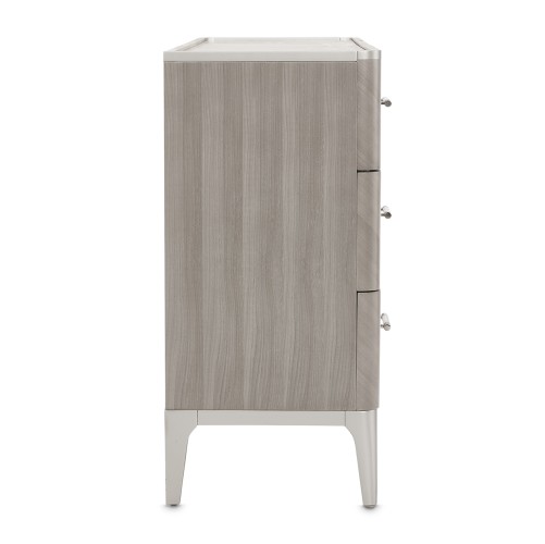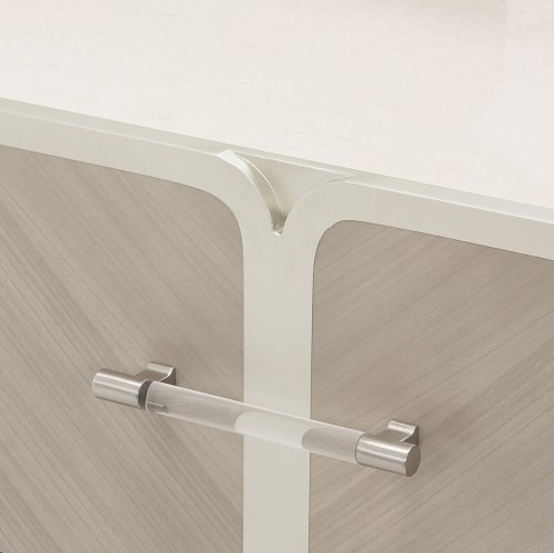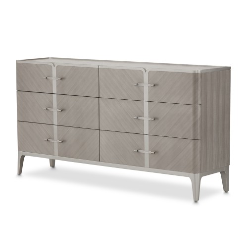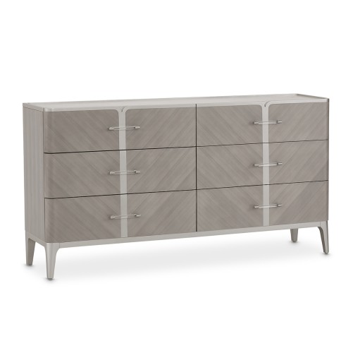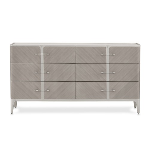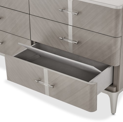Your style, refined. With ribbed accents, acrylic and stainless steel pulls, and soft closing drawers, the Lanterna Dresser brings modern glamour and chic style into one polished look. Modern elegance is found here! The Lanterna collection was designed with chic style and contemporary glamour in mind. Smooth Silver Mist finishes, acrylic and stainless steel accents,and sleek curves give this line the luxury ambience guaranteed to light up any home.