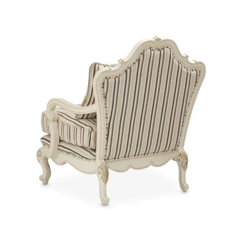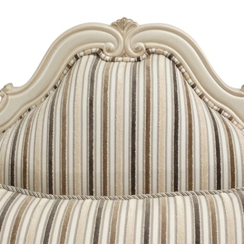 The influence of French regal comes to life with unique scallop-shaped pieces throughout the collection. A classic French look, with a chic twist depicting a hip, couture feel, the upholstered pieces in the Lavelle collection exudes class and style. Plush upholstery, generous storage, and display spaces are harmoniously tied together with antique hardware and genuine Swarovski crystal accents highlighting the design, detail, and style of the Lavelle collection. Features : Cushion Construction: Feather Blend (Foam and feather) Frame
