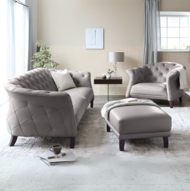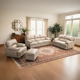 Edirne 3 Seater + 1 Ottoman Light Grey Italian Leather