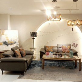 Kamalia 4 Seater Laf Sofa Leather + Tea Table + Raf Chaise Fabric + 2 Swivel Chair