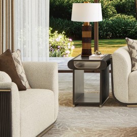 London Place features rich neutrals, eclectic designs, and clean, sloping shapes in champagne tones. Made for the contemporary mind, delivered with European éclat. The London Place End Table features gentle curves and slopes, and a stunning place for your favorite decor!.