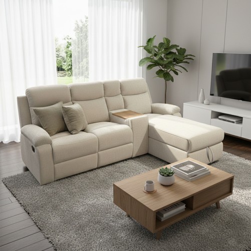 Features: Reclining Loveseat, Chaise With Storage, Console With Wood-Grain Tabletop And Cupholder Compartment