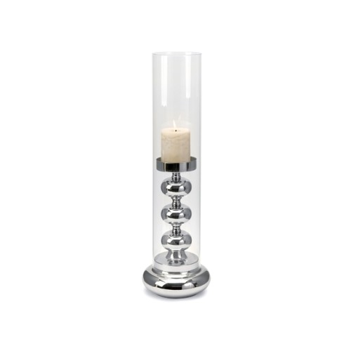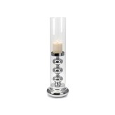 The Mellis small candleholder adds a contemporary vibe to any space and blends well with a variety of decor. It\'s tall, slender glass hurricane features an interior stand with elliptical stacked orbs.