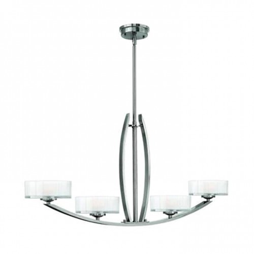 Meridian features minimal transitional styling with clean lines soft curves and low-profile faceted 1/2\" thick glass. This stem hung simplistic design will add a crisp focal point to any decor. Finish: Brushed Nickel.