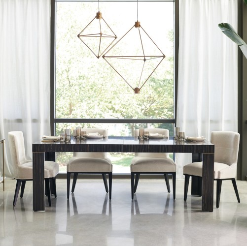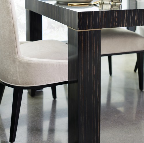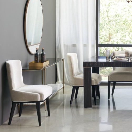Trendsetting by nature, this visionary dining chair is destined to be a topic of conversation. Contemporary in form, it features a stylized silhouette balanced with understated details that create an intriguing visual. A rounded back and curved seat give this chair fluidity while providing contrast to the straight lines and vertical grain patterns of the collection’s dining tables and accompanying pieces. Crafted in a bold Eclipse finish, this upholstered chair adds presence and luxurious comfort to any dining space—making it a smart choice for the design-savvy.