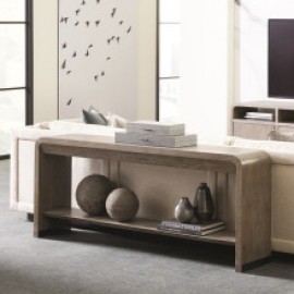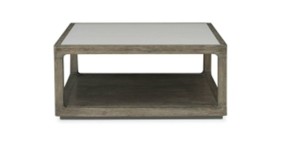 Simple yet sophisticated, this square cocktail table features a stunning top crafted of back-painted glass in Delicate Grey. An open shelf below adds visual interest while its streamlined silhouette is accented by an Ashen Oak finish over thick-cut quartered oak veneers.