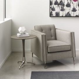 The perfect urban statement, our 54\" round table’s intricate, architecturally-inspired, Lightly Brushed Chrome base supports an attractive Zebra-wood veneer top. It’s light in scale and large on impact. The ideal dimension for a dynamic center table in a high-rise, luxury condominium. Consider it a match made in high-rise heaven!