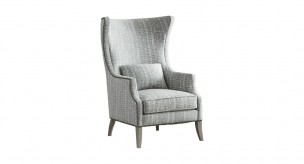 A vision of modern elegance, this transitional wingback chair features graceful curves and refined nailhead trim. The Mona chair strikes a perfect balance between traditional elegance and a clean, modern aesthetic. Based on the classic wingback, the design features graceful curves, flared wings and slender sloped arms. Nailhead trim distinguishes the elegant contours of the chair, while tapered legs add a contemporary touch. From a variety of fine fabrics and sophisticated finishes, this piece may be customized to suit any room.