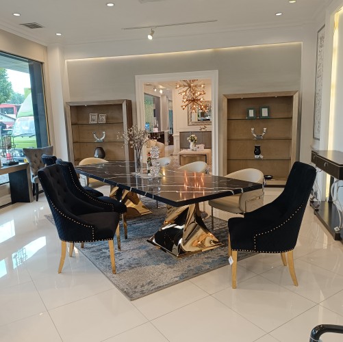 Nantes Dining Black Gold + 8 Nicasio Chair