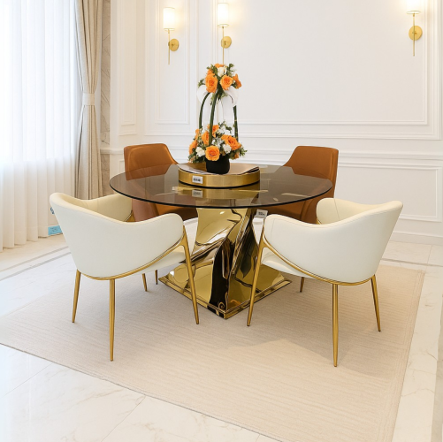 Nantes Round Top Glass With Laser Cutting - Champagne Base (CH 49-NX246B-TOP)