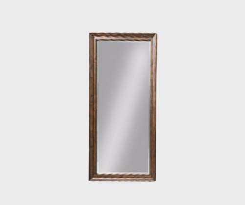 This beautiful vertical floor mirror from the Trisha Yearwood Home Collection has a brown finish with heavy distressing and burnishing that creates an uneven relaxed appearance to reflect years of wear and tear. This finishing technique blends a medium brown base with highlights underneath to invite a relaxed lifestyle. Features beveled glass.