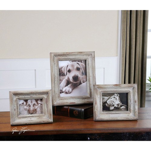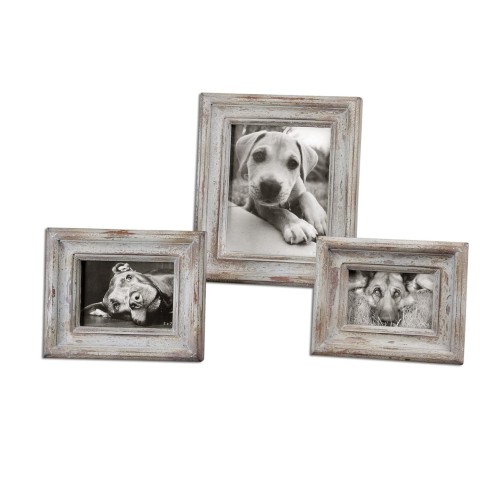 Heavily Distressed Aged Ivory Finish With Natural Wood Undertones. Holds Photo Sizes:4x6, 5x7 & 8x10. Sizes:Sm-8x10, Med-9x11, Lg-12x14