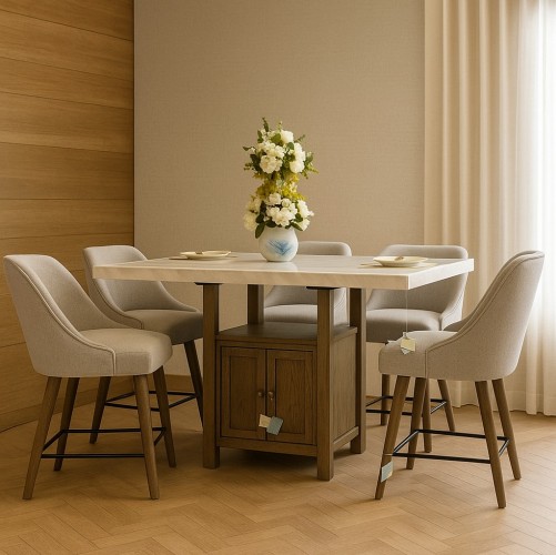 Norrer Counter Dining Dimension : 152 x 102 x 91 cm Material : Marble & wood Weight : kg Nerror Grayson Counter Stool x6 Dimension : 53 x 65 x 96 cm Material : Marble & wood Weight : kg By Malindafurniture
