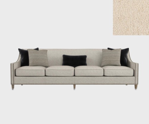 The Palisades sofa exhibits fine craftsmanship and a distinctly modern styling. Elegant sloped arms and sleek tapered legs add to the sophisticated appeal of this piece, while nailhead trim and welting accentuate its graceful curves and clean lines. Tapered legs capped in metal ferrules provide a chic final touch. This sofa delivers a luxurious, modern aesthetic.