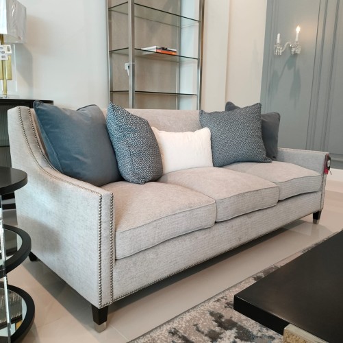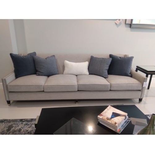 A blend of warm, traditional styling and modern accents makes the Sofa shine. Long, curved arms bring an elegant softness to the design and the surrounding room. Thin piping, a cleanly upholstered back, and tapered legs capped in brass or nickel ferrules provide chic final touches. Add more beauty by combining this sofa with a matching chair or sofa.