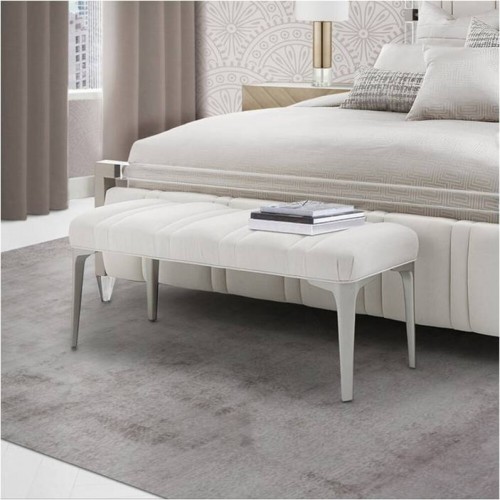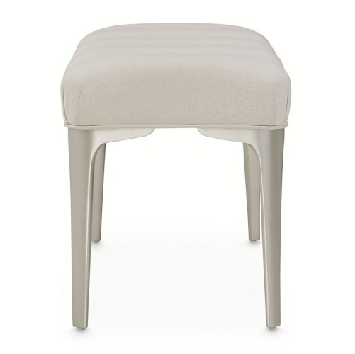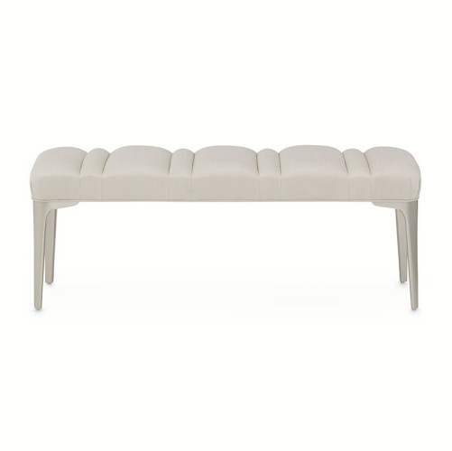 Celebrate your refined style with The Penthouse Bed Bench. This piece features beautiful channeling, shimmering fabric, Silver Mist finished legs, and a luxury style that stands out. Designed to shine at the foot of the collection's bed, or as an accent seat in a hallway or foyer.