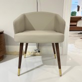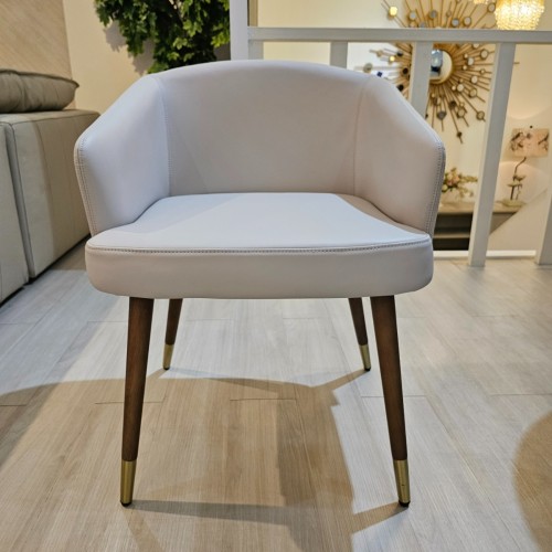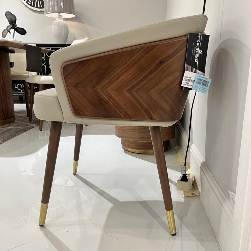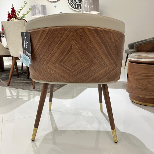 The elegantly designed modern mid-century dining chair has a modern edge, yet its simple design makes it suitable for dining tables or daily use in various settings. It is incredibly comfortable to sit on due to the soft-touch imitation Leath-Aire and thick foam seat cushion. This stunning dining chair seamlessly mixes a traditional design with a glossy tint, providing a sophisticated medieval touch to any environment due to its walnut and white color combination on the seat and metal and legs, making it more solid and sustainable.