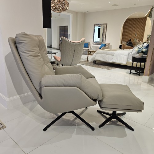 Experience pure relaxation in the cozy Piedmont Chair. This unique armchair is characterized by its smooth, thin shell, which houses a plump down cushion. The integrated fabric loop on the armrests is a special feature of the Piedmont Chair. The seating furniture stands on a rotating 4-leg frame made of polished aluminum and immediately conveys a lounge-like feeling thanks to the built-in tilting mechanism. Piedmont Chair was created so that you can relax after a day at work and lean back on the soft seat cushions.
