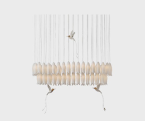 Blooming Bird Chandelier embodies natural elegance with its delicate design. Perfect for adding a touch of charm to any space, this chandelier becomes a captivating centerpiece that enchants and delights. Features: Material of suspended elements, buds: bisque bone china Material of suspended birds: bisque bone china, Swarovski crystals Pendant elements color: white matte Number of pendants: 5 birds Details: Dimension : 120 x 38 x 120 cm Material : Metal Weight : 22,09 kg By Malindafurniture