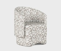 Make a splash in a monochromatic palette with this abstract patterned upholstered chair in the dining room. A gently curved barrel back is as stylish as it is supportive, and the chair glides smoothly on casters. Bold and eye-catching, this chair adds a touch of couture style to the table