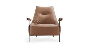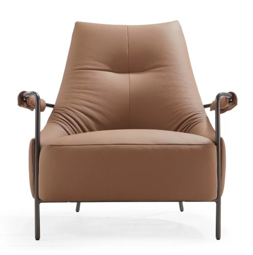 Lounge in modern comfort with the Brown Microfiber Leather Lounge Chair. Upholstered entirely in warm brown microfiber leather, this chair features a distinctive external metal frame that forms the legs and armrests. Its contemporary design and comfortable padded seating make it a perfect addition to any modern living room, reading corner, or stylish lounge area seeking both form and function.