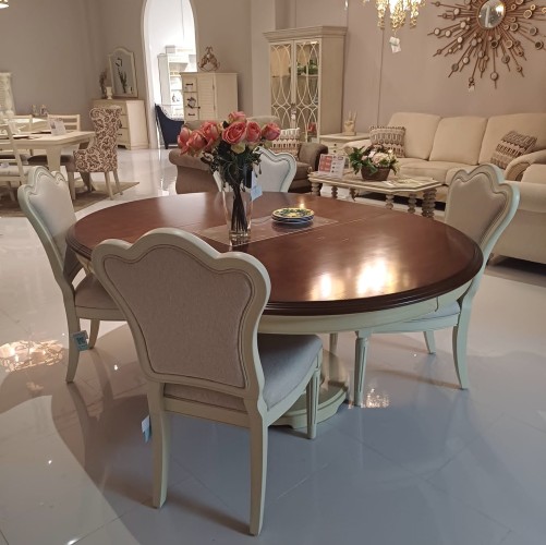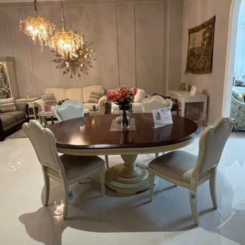 This expandable dining table features tapered fluted legs that are complemented by a shaped and beaded apron. An English toffee finish and soft shaped corners give this rectangular dining table a casual yet elegant look that will make guests and family members feel right at home. Its real wood tabletop surface can be wiped clean easily.