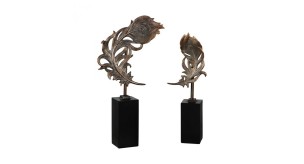 Feathers Finished In A Bronze Patina And Displayed Atop Matte Black, Square Pillar Bases. Sizes: Sm-7x21x4, Lg-13x25x4.