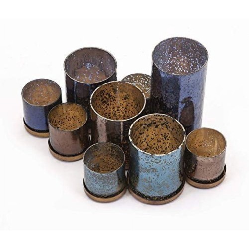 Beautifully handcrafted; candles not Included. Due to the artisan crafted nature of this product, no two will be identical.Great design updates the feel and tone of any room,Conveys artisan skill and quality craftsmanship, Makes a perfect addition to the curated home. Complements a wide variety of styles, Colorful Mercury glass and iron nine-light candleholder.