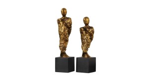 Textured, Heavily Antiqued, Metallic Gold Abstract Figures Sit Atop Antiqued Bronze Cube Bases. Sizes: Sm-4x13x3, Lg-4x15x3.