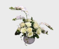 Senna White Flower Arrangement White Vase