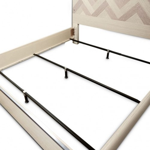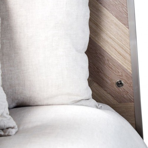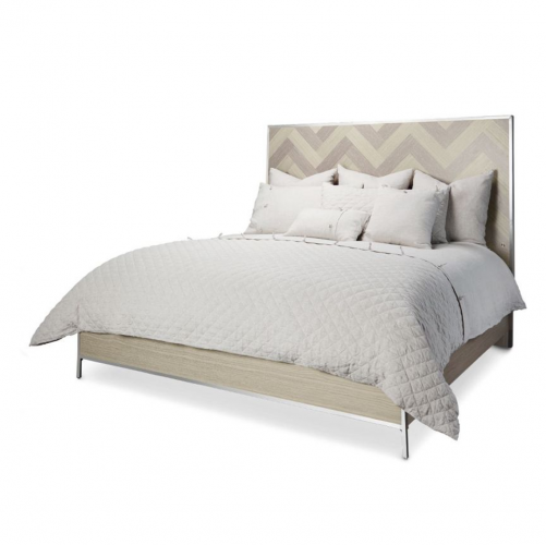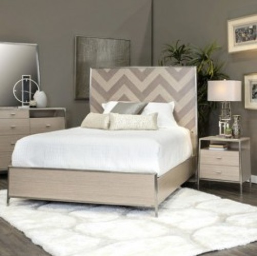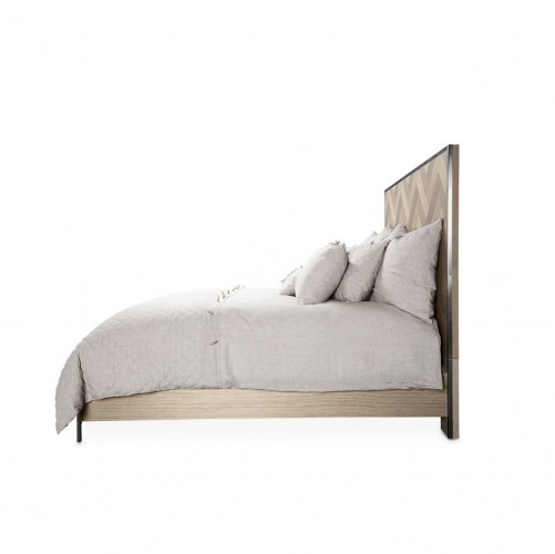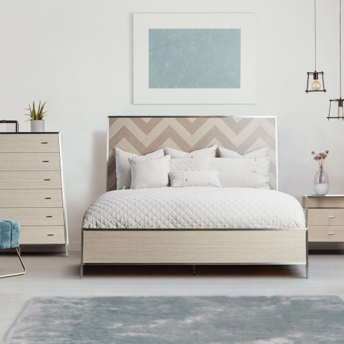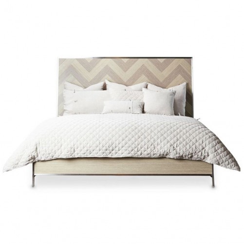 Headboard features a chevron pattern with Sand Oak and Mocha Elm Veneers