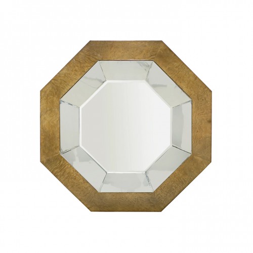 Wood-framed mirror of white ash burl veneer in Dark Caramel finish with polished stainless steel metal overlay. Non-beveled mirrored glass. Bar hangers. Dimension :W 112CM D 6CM H 112CM Material : Mirror and Steel Weight : 40Kg by Malindafurniture