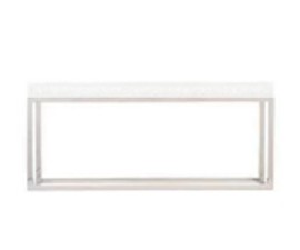 The precise folds of origami are the inspiration for the geometric bases on the Solaria console table. Cast in aluminum with a shiny nickel finish, the stunning supports draw all eyes, while the wood top balances the look with a softened counterpoint, featuring quartered white oak veneers in a Dune finish.