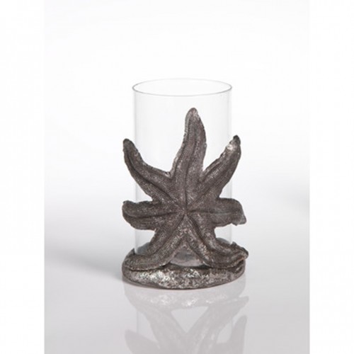 A wonderful way to add some coastal style to your home, deck or patio; these starfish hurricane candle holders from Zodax are sure to be a great decor accent. The starfish base has a metal look to it with a glass insert to protect your candle flame. The candle holder measures 7\" tall and 5\" in diameter. The base has felted pads to help minimize the wear and tear on tabletops and shelves.
