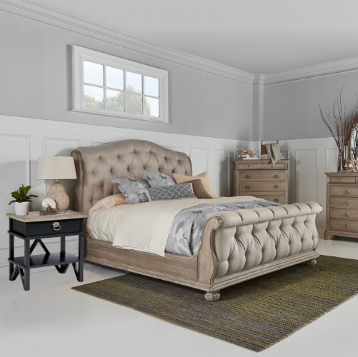 Victorian Chesterfield Inspiration: Drawing inspiration from Victorian chesterfield sofas, the Shoals Tufted Sleigh Bed carries the inviting heft and classic appeal of this timeless style.