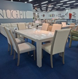 This truly striking dining table's contemporary design is sure to leave every dinner guest impressed. The gold leaf detailing on the inside of the table base adds a touch of glam style to this piece, while the table top's tempered glass insert serves to highlight this unique feature. This dining table is not only highly fashionable, its generous size ensures you will always be able to fit one more at your dinner parties.
