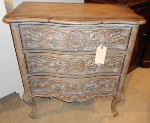 Exuberant design motifs such as acanthus leaf molding around the base, column motifs on the sides of the case and ornate bun feet infuse the piece with emotion. The refined rustic Antique Slate finish in a beautiful patina has the look of natural wood bathed in sunshine for a livable resort feeling. The bottom drawer is cedar-lined.