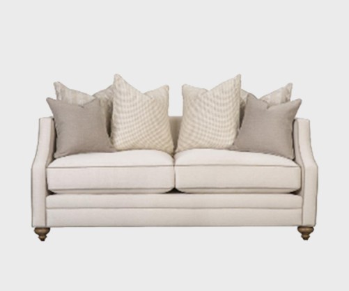 Townsend tells the story of mixed fabrics and forms with gracefully shaped track arms and contrast welt. The sleek frame design is softened with the unique concave arm detail while scatter back pillow styling in a handsome mixture of fabrics and textures welcomes. Townsend’s textured cream body cloth creates the perfect transitional nest.