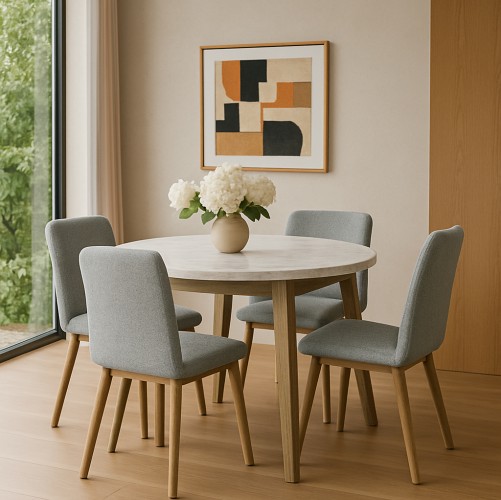 VIDA GUANGXI WHITE MARBLE TOP ROUND DINING TABLE (STS VD480WT-R)