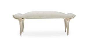 Extra seating with a dash of timeless beauty. The Villa Cherie Bed Bench was made to match your chic interior, add extra seating, and perfect your luxury atmosphere. Find romance every day with Villa Cherie. With graceful curves, chic champagne accents, and Swirl Mahogany surfaces, this collection combines the elegance of traditional style and the polish of modern design into a truly luxurious look. Features : Bench seat is upholstered in Porcini velvet Frame and tapered legs are finished in Chardonnay.